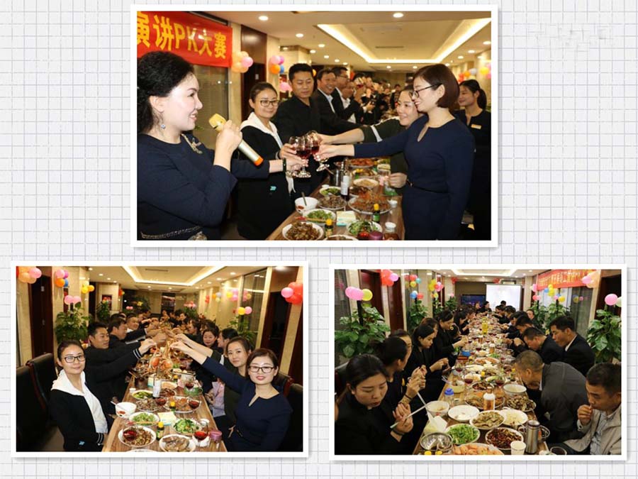 劉總以秦川“家長”的身份說到:天時(shí)不如地利,地利不如人和;將相和而邦國興,家和則百樂生矣!今晚我們秦川一大家子人相聚一堂,其樂融融,這是一個(gè)多么美好的時(shí)刻!在這個(gè)其樂融融的美好時(shí)刻,很高興能與大家相聚在此共進(jìn)晚餐,請(qǐng)大家舉起自己的酒杯,開懷暢飲,放聲高歌。