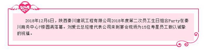 大家把酒言歡,祝福我們的祖國(guó)繁榮昌盛、祝福秦川公司越來(lái)越好、祝福壽星們身體健康,工作順利。