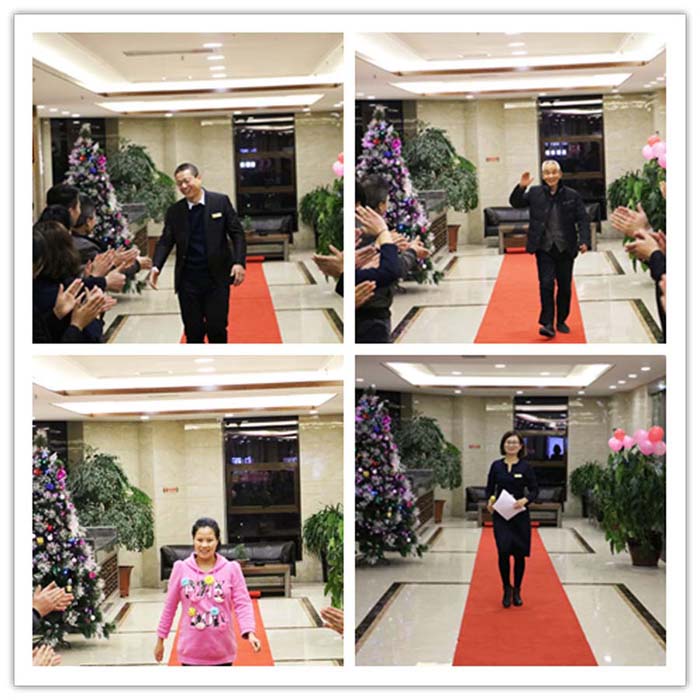 主持人宣布生日宴會(huì)正式開始,公司的15位壽星伴隨著優(yōu)美的音樂(lè),踏著紅毯,