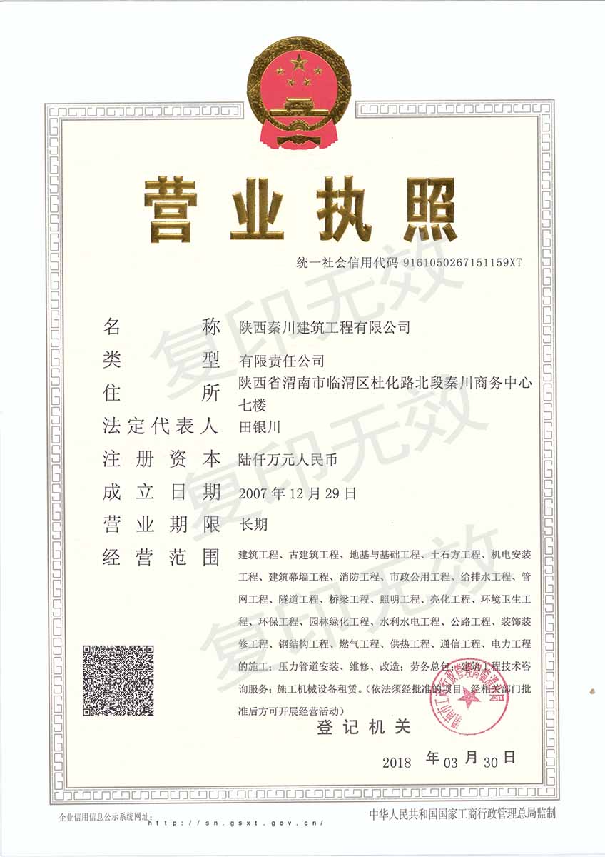 公司名稱:陜西秦川建筑工程有限公司